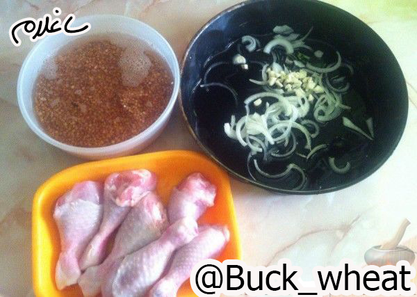 ( در این غذا از تکه های ران مرغ استفاده شده است که بدلخواه میتوان از تکه های دیگر مرغ نیز استفاده شود )