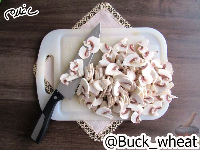 2- قارچ به قطعات بزرگ با لایه های نازک خرد میشوند.